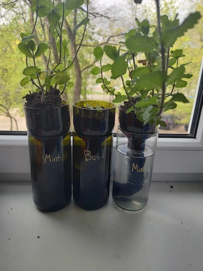 I also did a non clothing craft and turned some wine bottles into self watering herb planters. I’ve been meaning to try this for ages now and I’m super excited about how these turned out. The mint is from a grocery store plant that I split and the basil has grown from seed. I want to do more of these but I wanted to test if the concept would even work before I went too far into it. So far so good, I’ve had to refill the water so the plants are definitely sucking up the moisture.