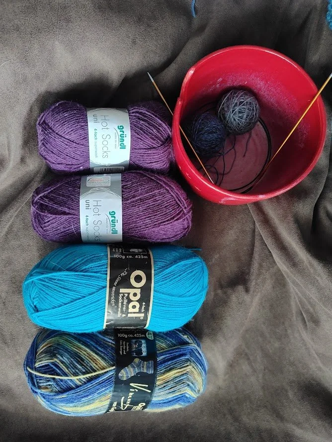 As for acquisitions I haven’t bought too much. I’m trying to unpack everything from the move and I think I’m discovering just how much less space I have. Aside from the things I’ve needed to do the projects I’ve mentioned, I also bought the rest of the stuff to do the other socks in the two-at-a-time class. The Van Gogh Opal is for the toe-up fingering weight, and I got two of the Grundl hot socks to try to make a pair not from the class patterns to see if I could adapt other patterns to the two-at-a-time method. I don’t know if they 100% count as an acquisition because I wrapped them up and gave them to myself for Christmas.